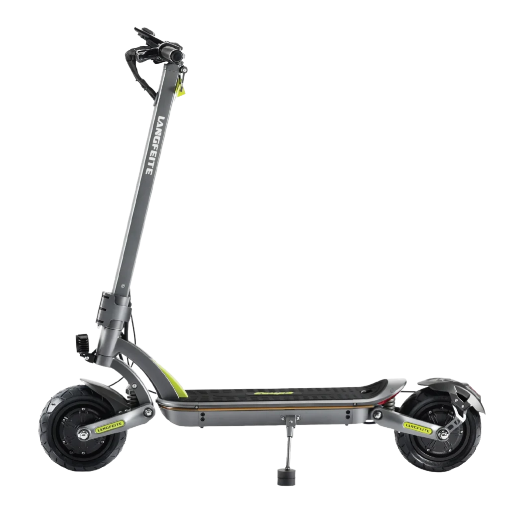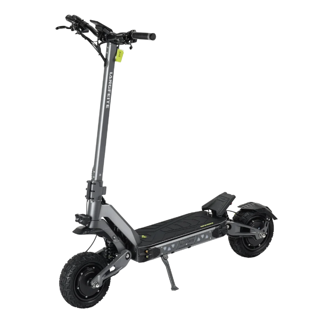 Scooter eléctrico con dos motores de 1550W, potencia máxima de 3100W y velocidad ajustable de hasta 70 km/h. Ofrece autonomía de 70 km, frenos hidráulicos dobles y suspensión monoshock, ideal para quienes buscan potencia y seguridad en la ciudad.
